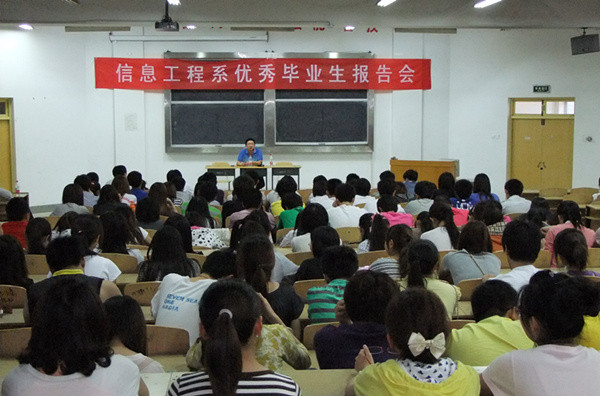 5月26日晚7时,信息工程系在9号楼301多媒体教室举办优秀毕业生报告会。系主要负责人、辅导员(班主任)及2009级全体学生参加了报告会。