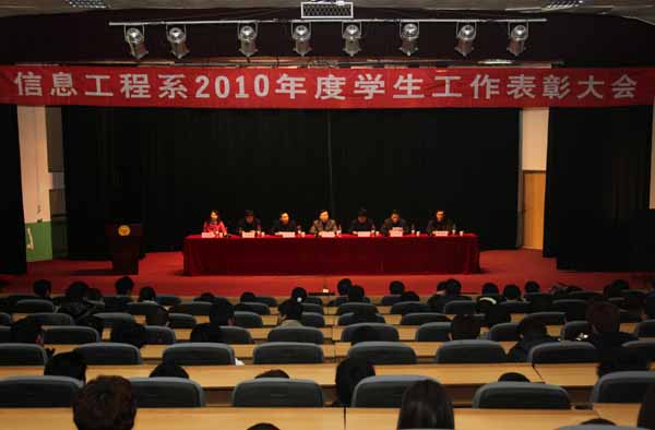 3月24日下午,信息工程系在学院报告厅召开2010年度学生工作表彰大会,对2010年度学生管理工作过程中涌现出的班级量化优秀班集体、学习标兵、技能大赛等各类活动的获奖者进行了表彰。学院副院长贺志强,团委学生工作处和教务处负责同志、信息工程系师生600余人参加了大会。