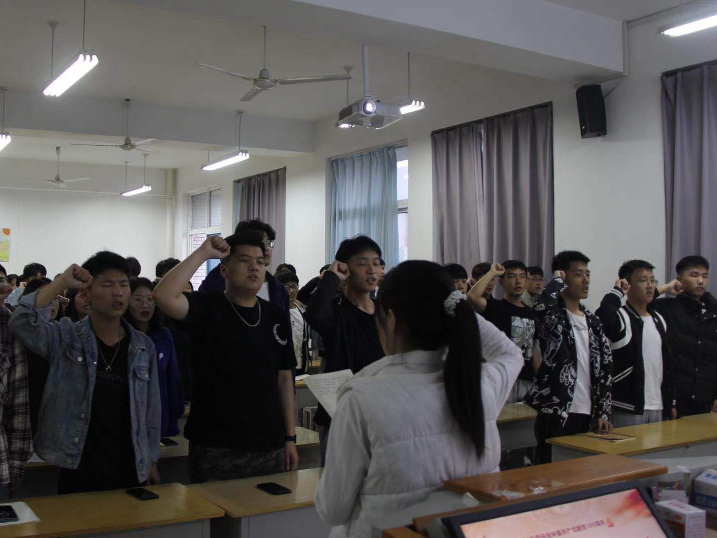 此次主题团日活动分为升旗仪式、主题团课、班级交流三个部分,必威BETWAY西汉姆联全体在校生共同参加。早上,全体同学齐聚操场,共同参加庄严的升旗仪式。伴随着雄壮的国歌,五星红旗冉冉升起,辅导员老师和学生代表分别进行了演讲,向同学们讲述了中国共产党的百年奋斗历程,告诉同学们新时代青年大学生正逢其时,应当不忘初心、刻苦学习、不懈奋斗,为党和国家的发展贡献力量。下午,各班级在负责人的带领下开展主题团课,让同学们在学党史中汲取营养、获取力量,增强了爱党爱国信念。晚上,同学们展开班级交流,分享党史学习感悟与心得,并进行了庄严宣誓。
