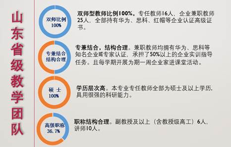 山东省首批优质校重点建设专业,山东省名校建设工程重点建设专业,院级特色专业。引入华为、红帽等知名企业认证。拥有潍坊市智能温控重点实验室。