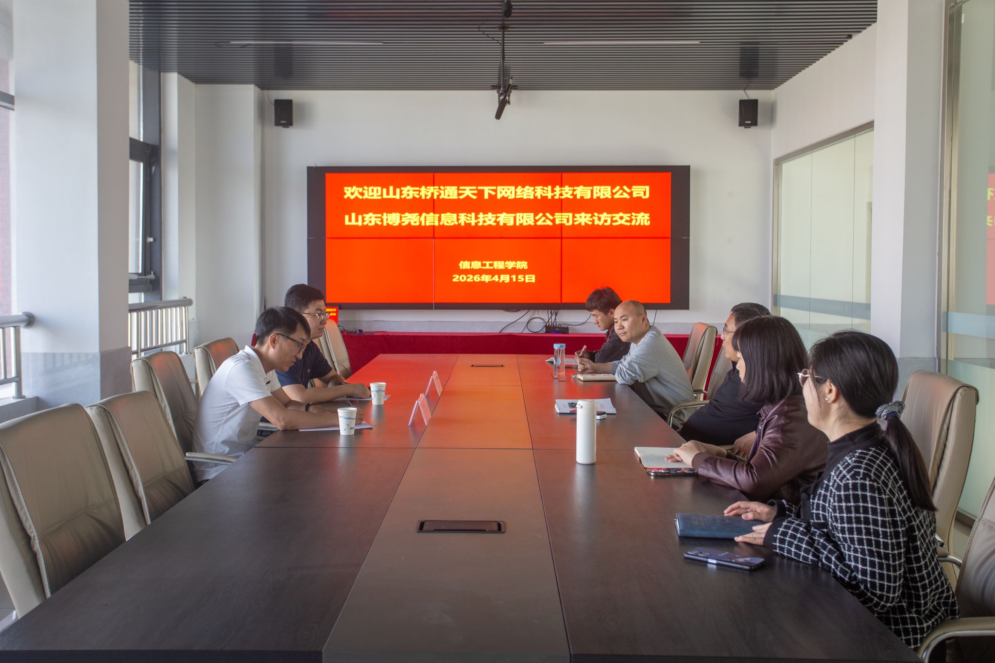 4月15日下午,山东桥通天下网络科技有限公司董事长曾志、山东博尧信息科技有限公司董事长董家铄一行到必威BETWAY西汉姆联考察交流,必威BETWAY西汉姆联主要负责人及相关专业教师参加座谈活动。