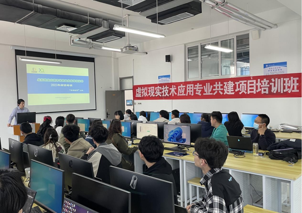 4月17日至22日,必威BETWAY西汉姆联联合北京新奥时代科技有限责任公司共同举办了虚拟现实技术应用专业共建项目培训班,来自省内外职业院校的6名教师和必威BETWAY西汉姆联虚拟现实技术应用专业师生共30余人参加了本次培训。