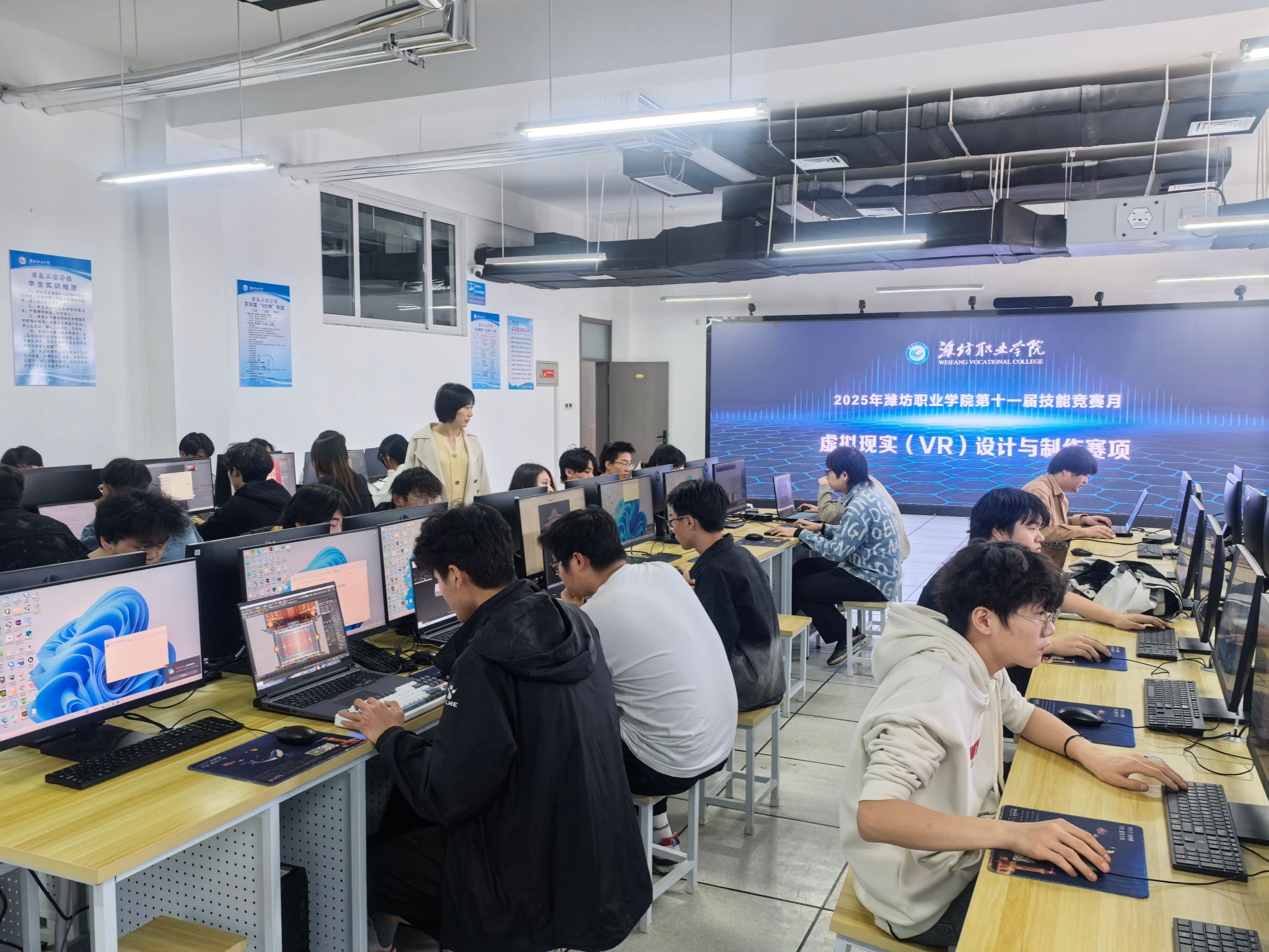 该院各竞赛项目整合校企优质资源,邀请企业专家全程参与赛题命制、评分标准制定、评判打分等环节。企业专家将一线生产项目、前沿业务场景转化为赛题,在打分环节引入企业用人评价逻辑,以行业实际需求为导向,精准把控赛题难度与实践价值,比赛内容与形式深度对接国赛标准与企业岗位需求,确保竞赛与职业技能标准、行业前沿技术同频共振。比赛中,参赛学生精神饱满、沉着应战、操作娴熟,展现了扎实的专业知识、规范的操作技术和良好的职业素养,获得评委老师的一致肯定。竞赛活动组织贯彻“人人出彩 技能强国”理念,通过多渠道宣传动员,共组织430名学生参赛,充分调动了学生的参与积极性,营造了“人人努力成才、人人皆可成才”的育人氛围。