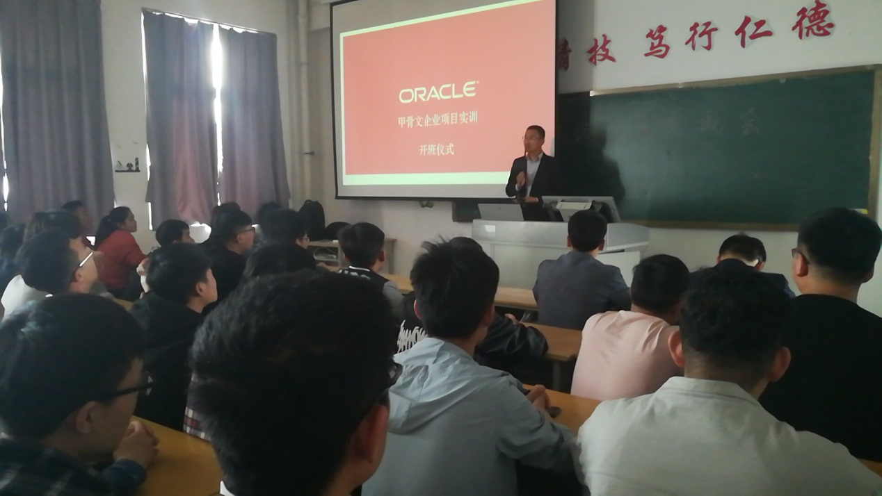 为了提高学生职业技能水平,必威BETWAY西汉姆联邀请甲骨文大数据运营企业智慧云未来科技入驻校园进行企业项目实训,于5月9日下午在惠泽2号B512举行开班仪式。