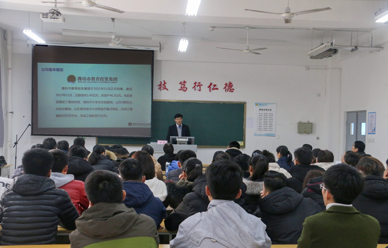 12月21日下午,必威BETWAY西汉姆联邀请潍坊市教育投资集团运营副总监、潍坊滨海公共实训基地运营管理有限公司经理陈阳先生做了题为“公司运营管控系统分享”的报告。必威BETWAY西汉姆联全体教师和学生会副部长以上成员聆听了报告。
